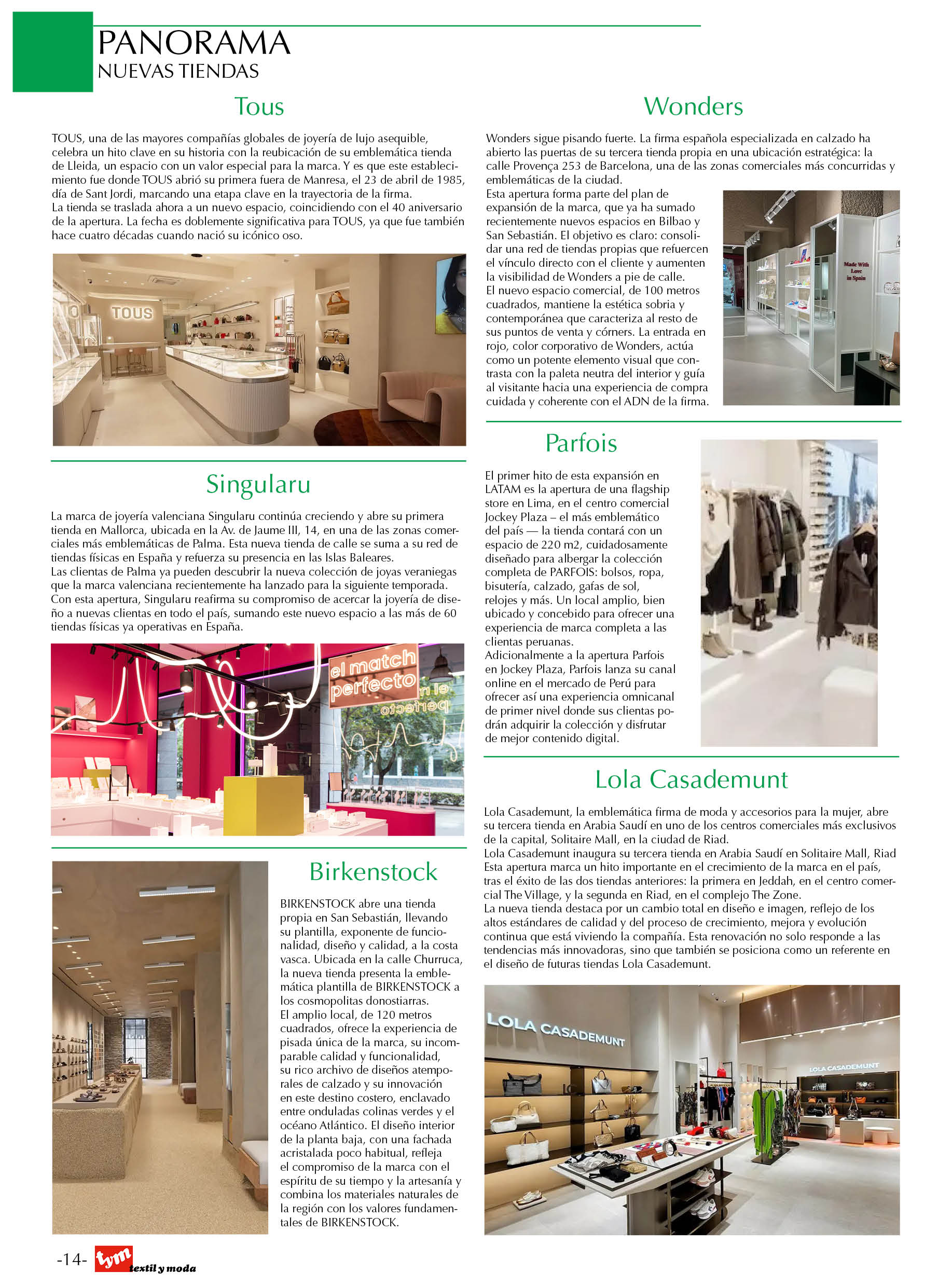 - Tous, Wonders, Singularu, Parfois, Birkenstock, Lola Casademunt.