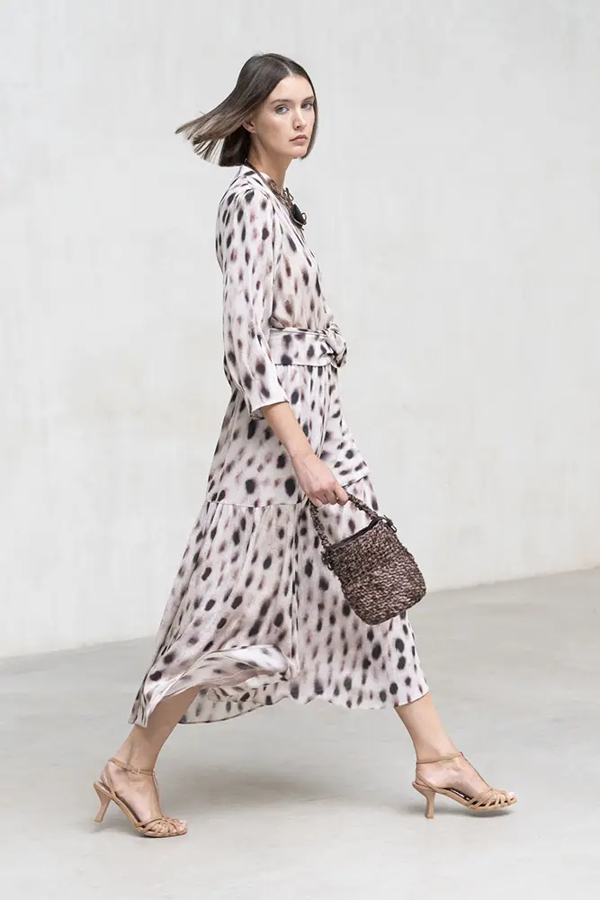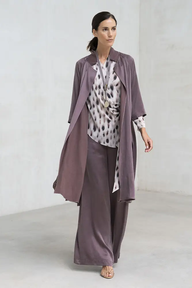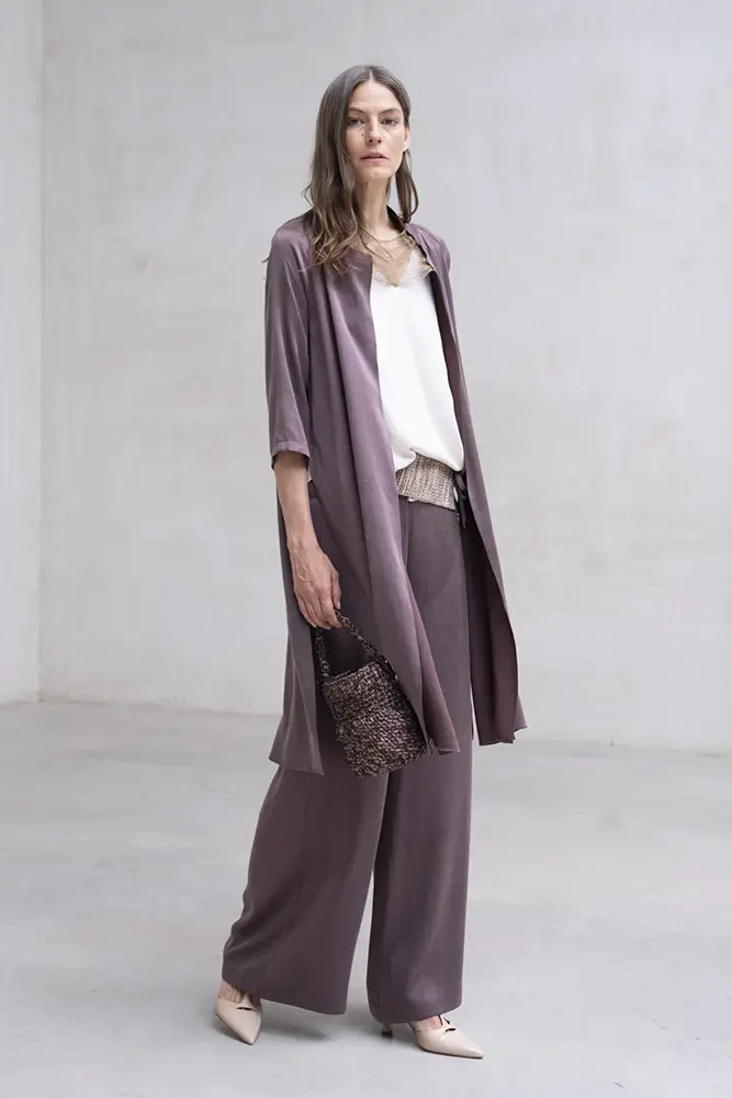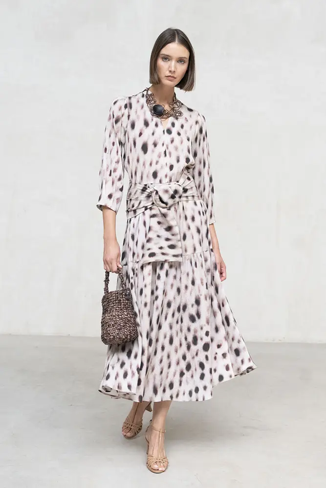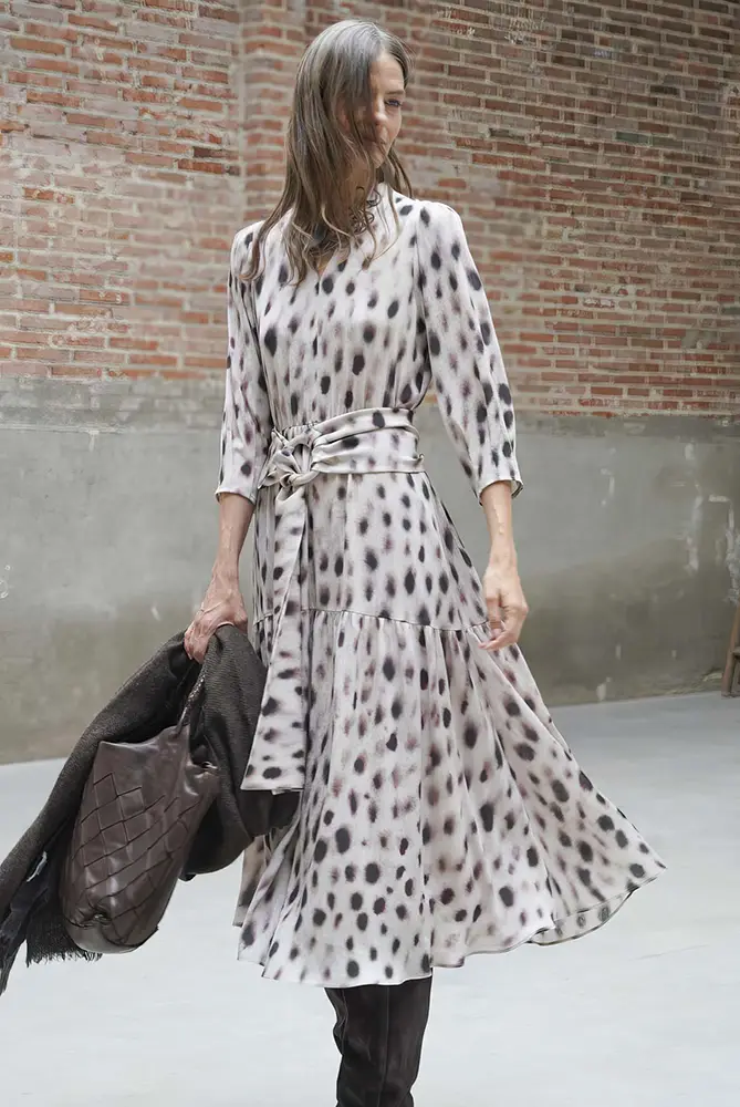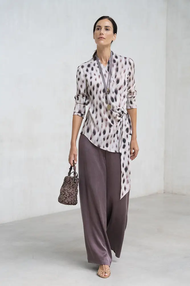Cada pieza cuida el gesto y el movimiento, con estampados con carácter, caídas naturales y una paleta cromática que transita entre ciruela, visón y verde empolvado. Diseños que no buscan llamar la atención, pero dejan huella en cada paso.