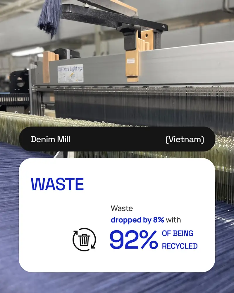En cuanto a residuos, el 40% del lodo generado en los procesos de tratamiento se reutilizó en la fabricación de ladrillos y bloques de construcción, mientras que los restos textiles se transformaron en nuevos materiales a través de STELAPOP. El objetivo declarado: llegar a cero residuos mediante la reducción, reutilización y reciclaje de subproductos.