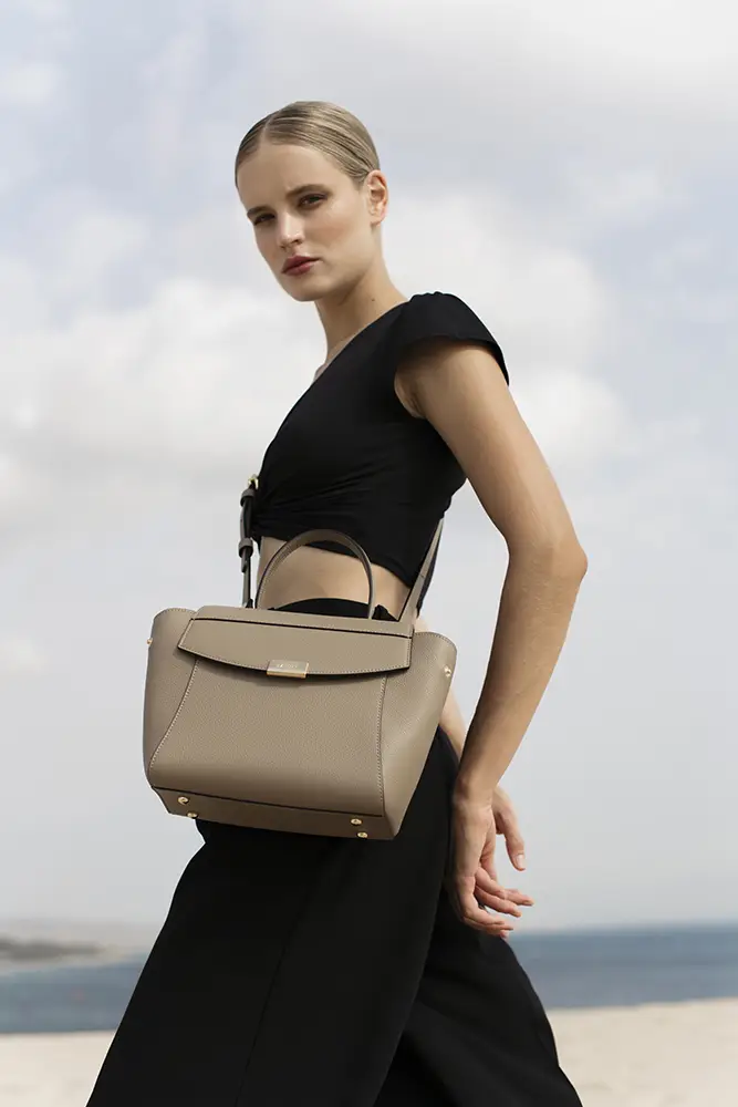 Fiel a su esencia, la firma española apuesta por diseños de líneas depuradas y minimalistas, elaborados con maestría artesanal. Tonos suaves como el marfil, beige o arena aportan luz y versatilidad a looks urbanos y profesionales, siendo el complemento perfecto para transitar con estilo de la reunión matinal al afterwork.