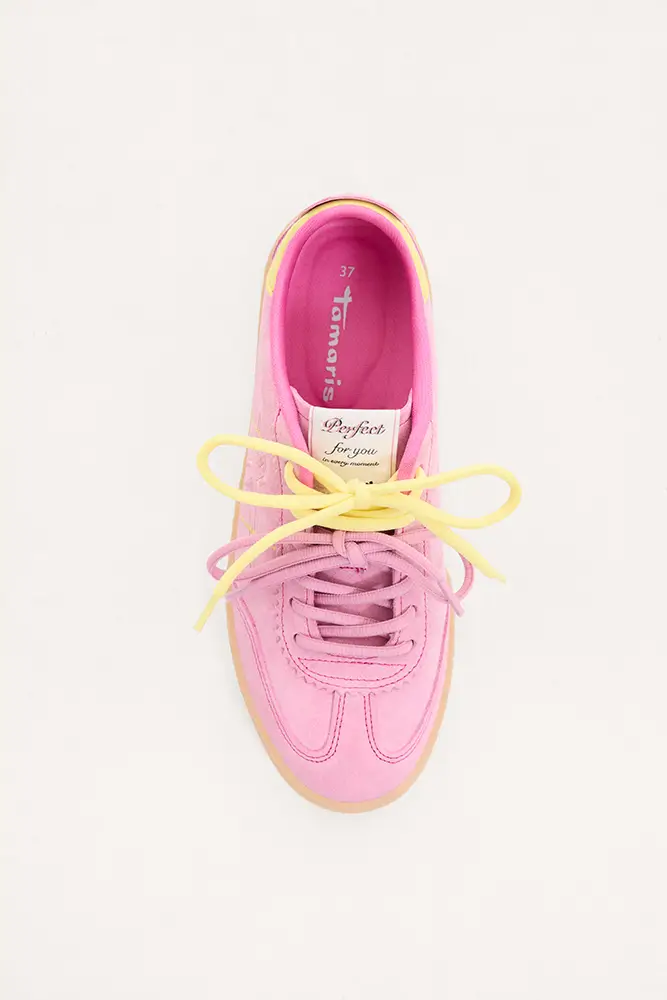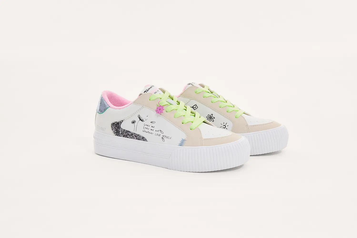 La temporada arranca con una explosión de libertad creativa. Tamaris rompe las normas con zapatillas de plataforma, estampados salvajes, detalles de purpurina y mensajes reivindicativos como “Loves Me, Loves Me Not, Whatever – Love Myself”. Los tonos neón, los estampados florales y los detalles inesperados en materiales como PU y glitter crean un estilo urbano sin reglas, pensado para quienes se expresan sin pedir permiso.