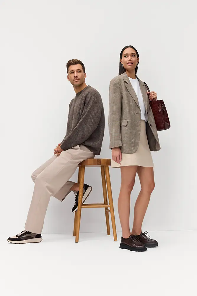 El mes de agosto introduce un imaginario más cálido, inspirado en la conexión con la naturaleza. Una paleta de colores marcada por tonos mocca, marrón, taupe y burdeos da vida a sneakers y botines Chelsea elaborados en serraje de textura suave.