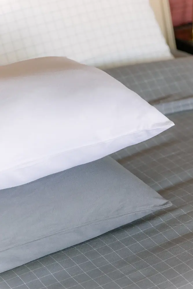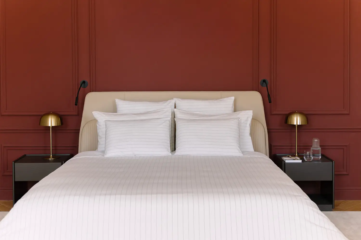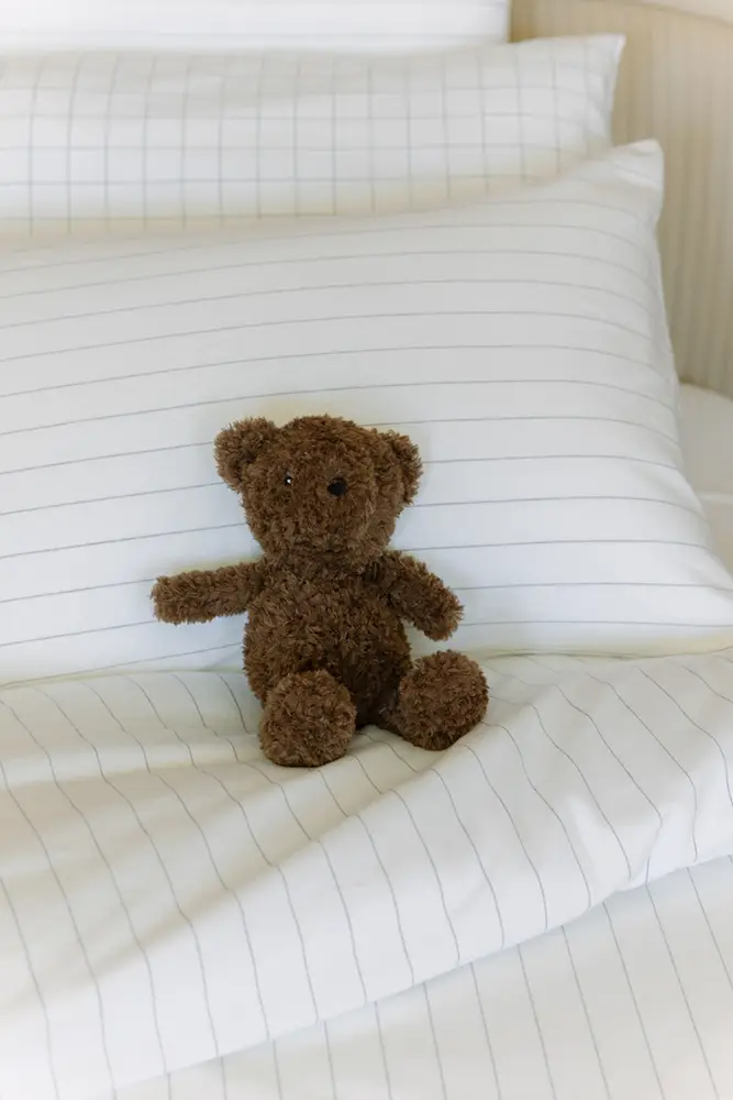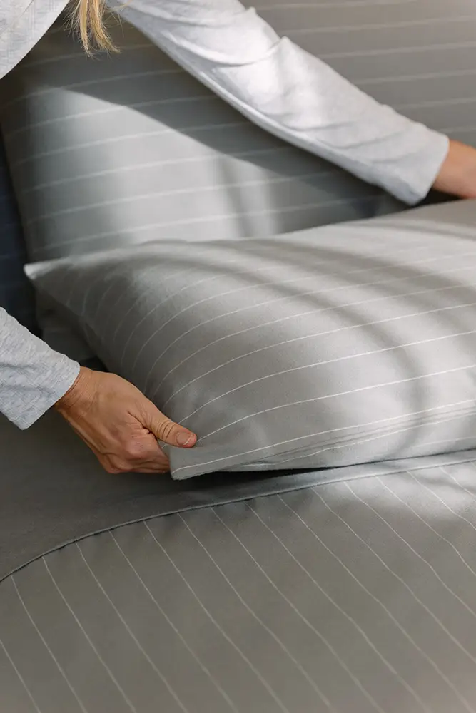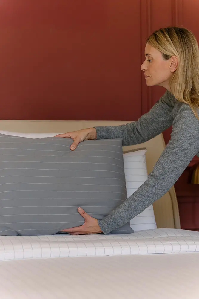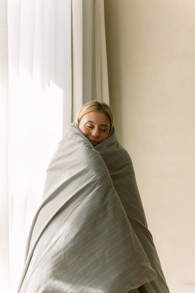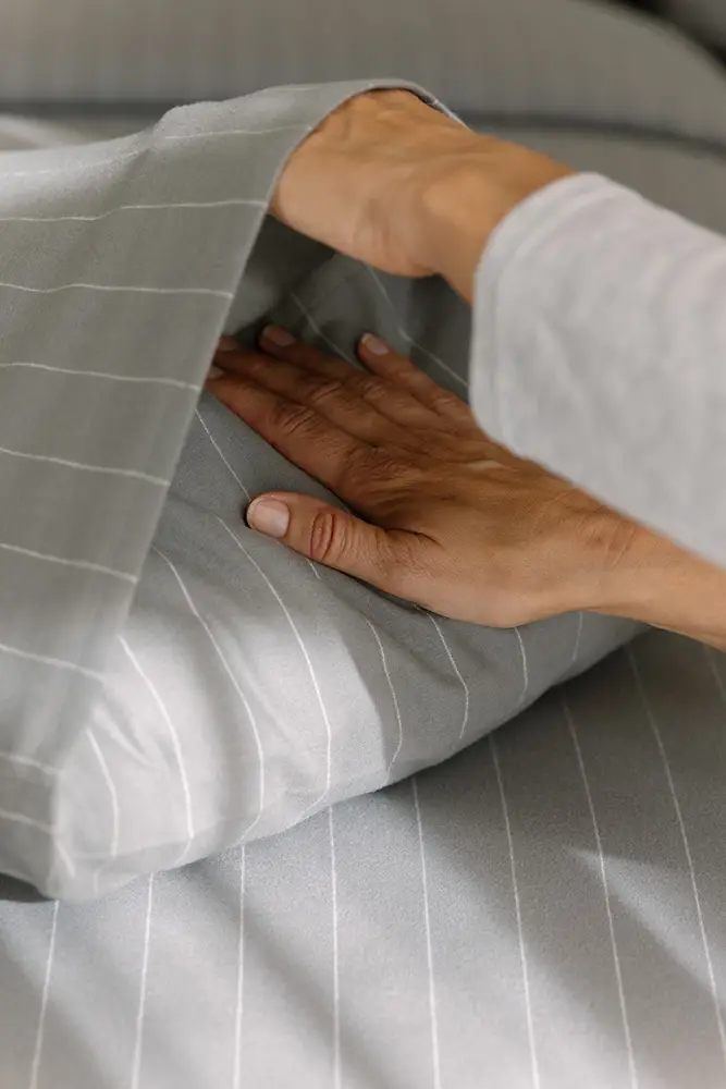 La colección presenta patrones minimalistas de rayas y cuadros, disponibles en blanco y gris, combinando un diseño atemporal con la estética acogedora del invierno. Incluye funda nórdica, sábana encimera, sábana ajustable y fundas de almohada. Esta mezcla de rayas, cuadros y piezas lisas permite infinitas combinaciones, creando conjuntos armoniosos y versátiles que se adaptan a diferentes estilos de dormitorio. Cada funda nórdica incluye botones translúcidos discretamente ocultos, que garantizan un acabado elegante.