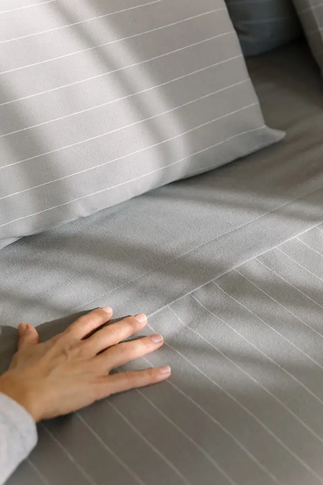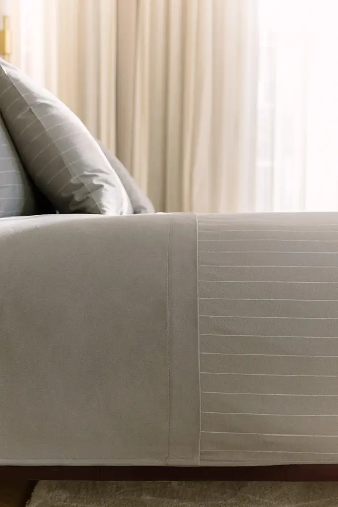 La franela 100 % de algodón es cálida, transpirable y suave, lo que la convierte en la opción perfecta para noches acogedoras sin sobrecalentamiento. Su tacto extra suave y afelpado proporciona una sensación inmediata de confort, mientras que su durabilidad y fácil mantenimiento garantizan que la suavidad y el color se mantengan incluso después de varios lavados. Con una estética versátil, la colección combina estampados clásicos y minimalistas, y sus patrones y colores atemporales permiten múltiples combinaciones, adaptándose a diferentes estilos de dormitorio.