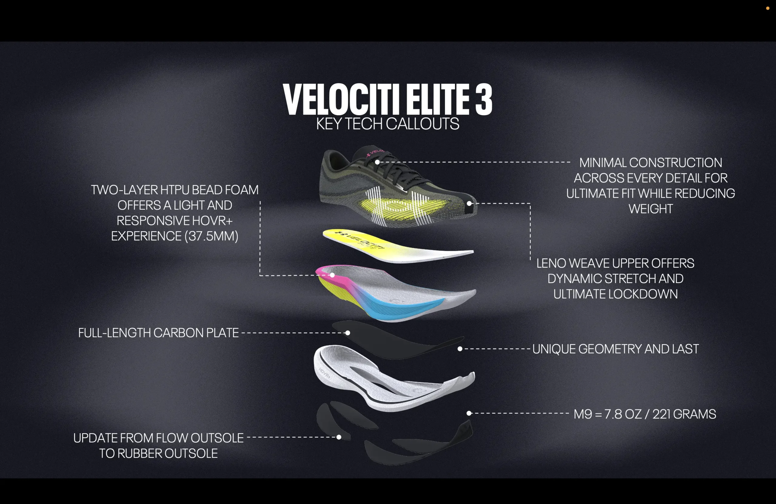 Velociti Elite 3 no es solo una zapatilla de running. Es una herramienta de competición creada para quienes entienden que cada detalle cuenta cuando el objetivo es llegar más lejos, más rápido.