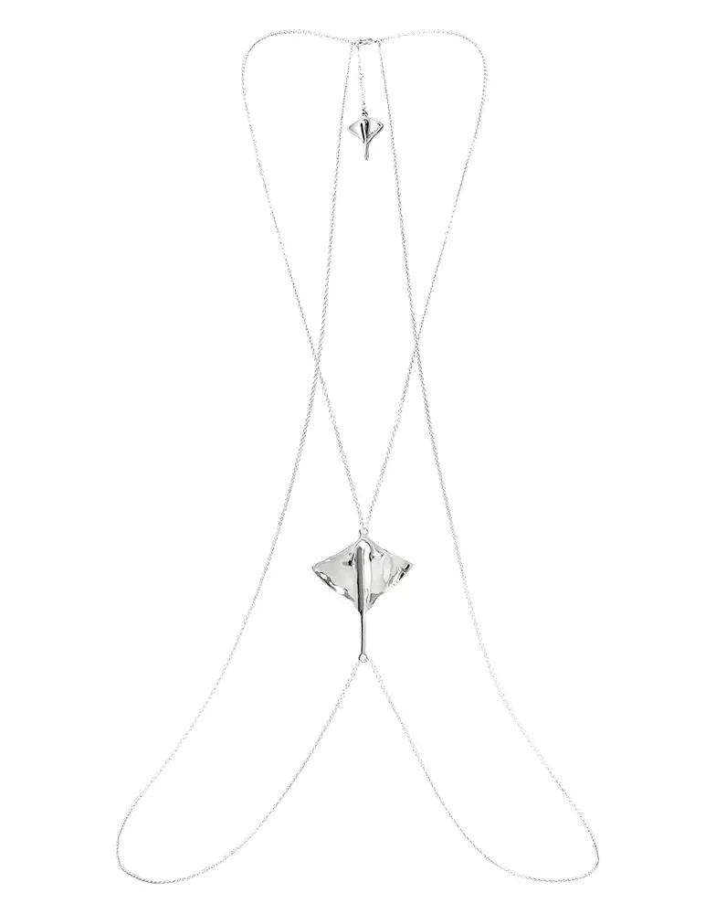 ¿Pero como podemos incorporar estas joyas en nuestros looks? Siendo una colección tan versátil y con una amplia gama de producto, las opciones son infinitas. Para días enteros de playa, combinar las piezas más ligeras de la colección (como pueden ser pendientes y anillos) con bikinis y pareos. Para una cena más especial, combinar los collares y pulseras con prendas de lino en tonos neutros es otra opción perfecta. Y, por último, si el plan es sentarse a ver el atardecer, el body chain (producto estrella de esta colección), es la joya que te hará elevar cualquier vestido más sencillo.