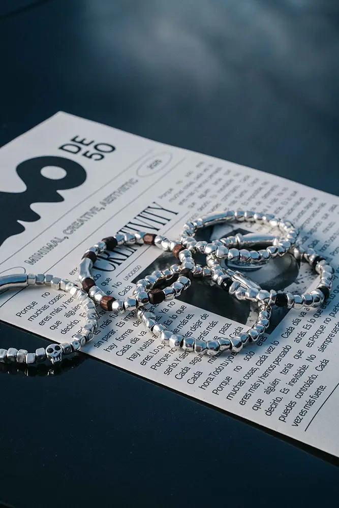 Los detalles como calaveras en metal y elementos de madera los encontramos en diferentes productos -collares, pendientes y charms—, hacen que sea una clara elección para esas personas que deciden escoger en sus vacaciones la opción más intrépida y desafiante.