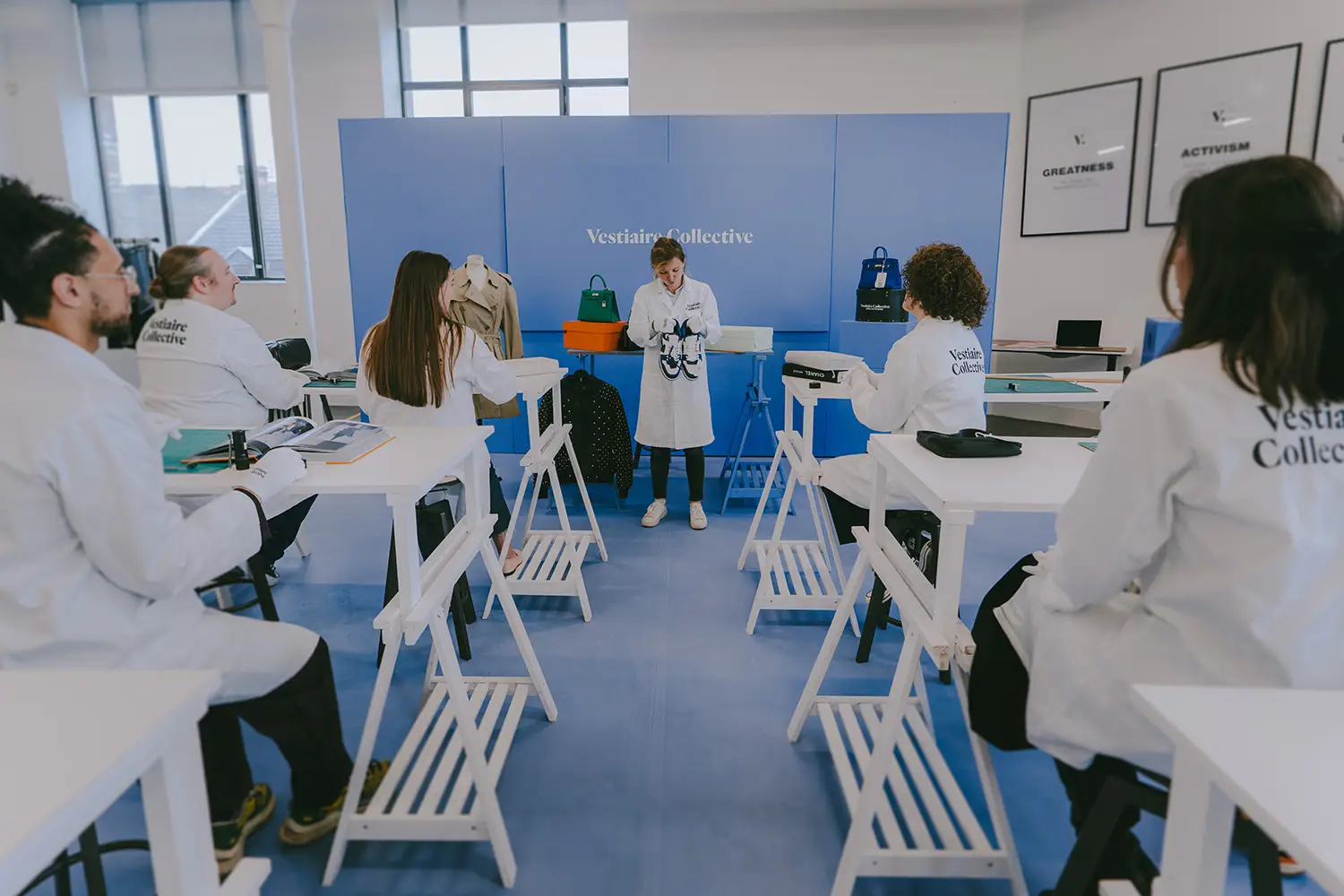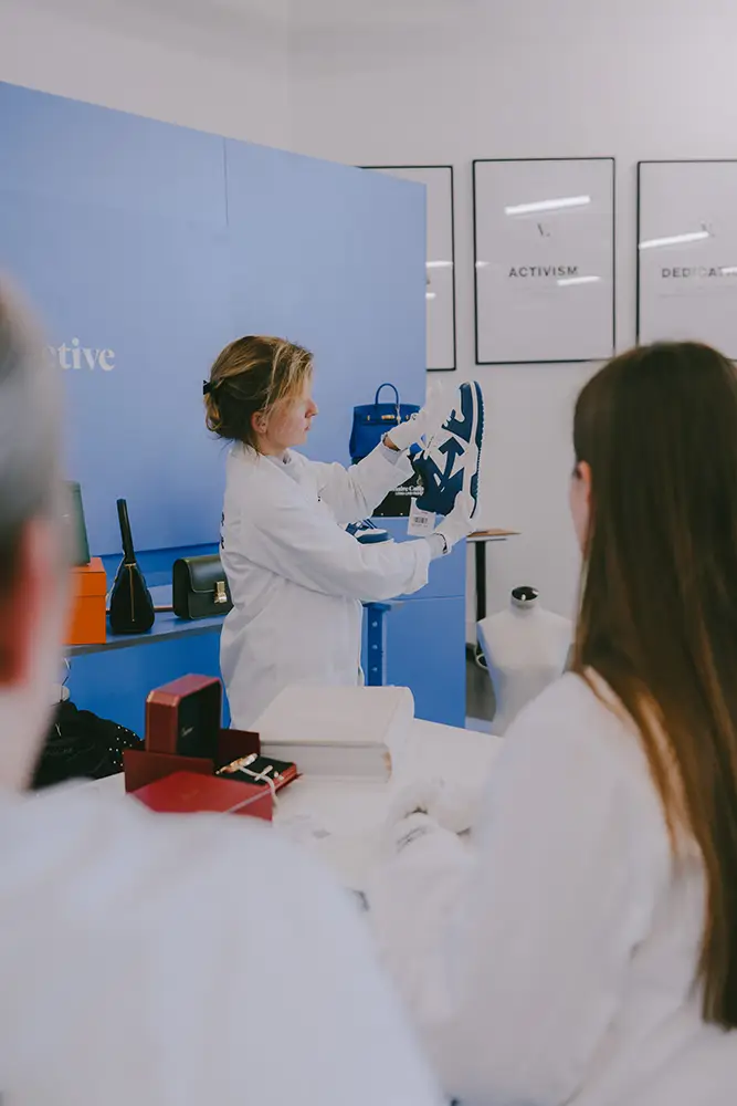 Cada producto que pasa por la red de Vestiaire Collective se beneficia de la experiencia de un equipo de autentificación formado gracias a la academia interna de la lucha contra la falsificación (creada en 2017). Cada experto lleva a cabo 750 horas de formación inicial, seguidas de 180 horas anuales, lo que refuerza la capacidad de la plataforma de adaptarse a nuevas amenazas de falsificación en tiempo real.