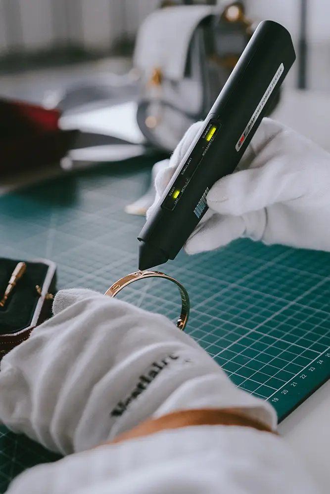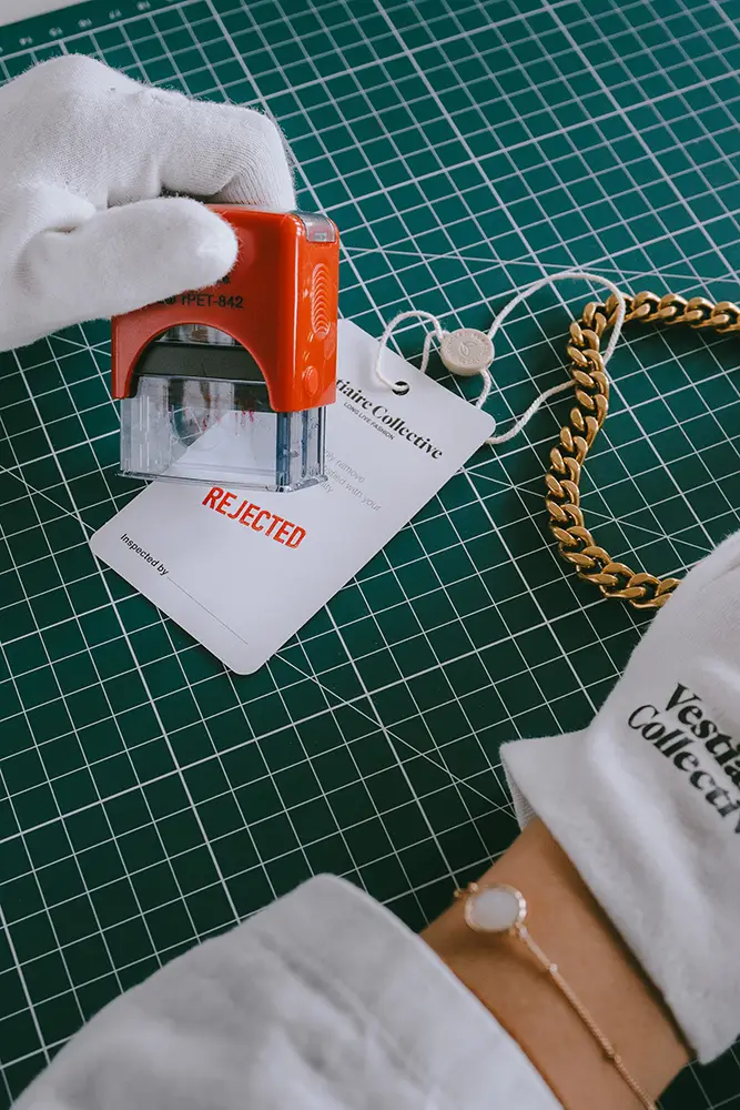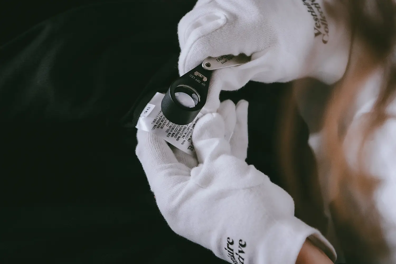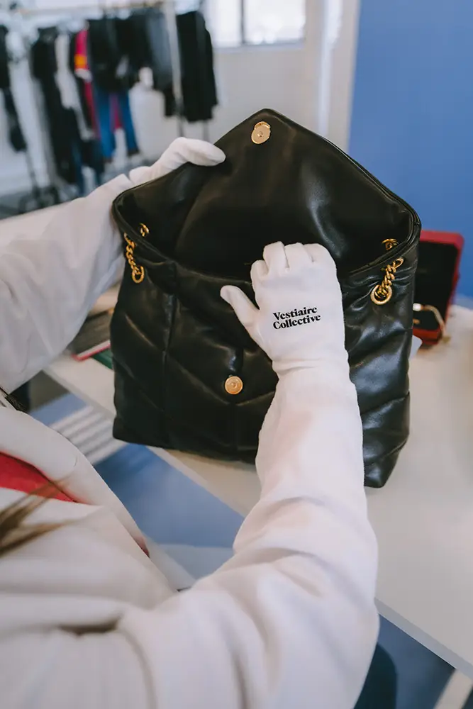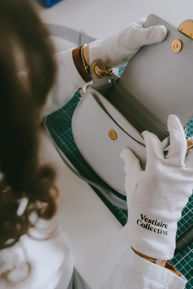 - Autentificación física: cada artículo que se aprueba durante el proceso de comprobación digital y pasa a autentificación física se examina en persona de la mano de especialistas formados. Estos expertos reciben su formación en la academia interna de la lucha contra la falsificación de Vestiaire Collective, donde se valen de herramientas y tecnologías que les proporciona la marca para validar la autenticidad del material, la confección y el diseño.