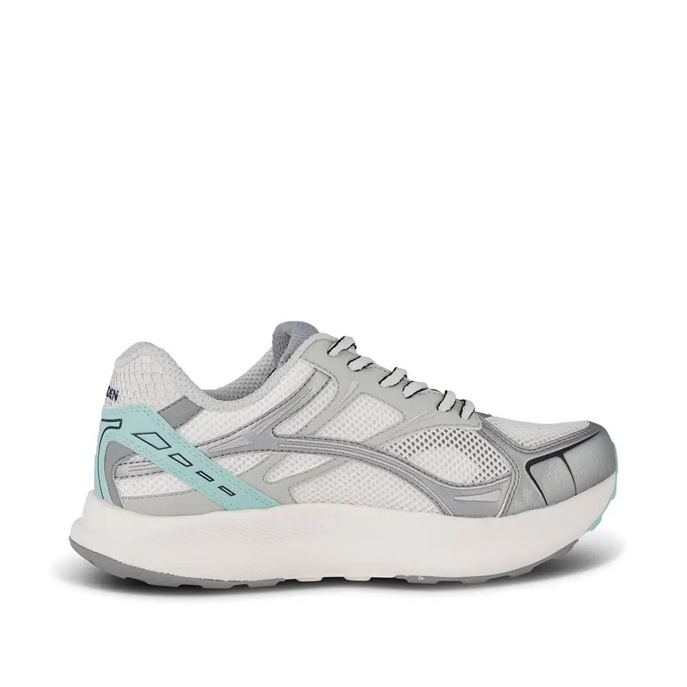 Las zapatillas FREJA RUNNER de la firma de calzado sostenible Woden unen ambas tendencias en un único modelo que se puede convertir en tu favorito del momento. Esta exclusiva zapatilla combina tejidos reciclados y piel metalizada proveniente de curtidurías certificadas. Está diseñada con plantillas de corcho y suelas de goma (65% natural y 10% reciclada) que cuentan con la llamada tecnología Natural Soft de Woden para más comodidad. Ofrece un ajuste excepcionalmente cómodo con un toque de estilo contemporáneo.