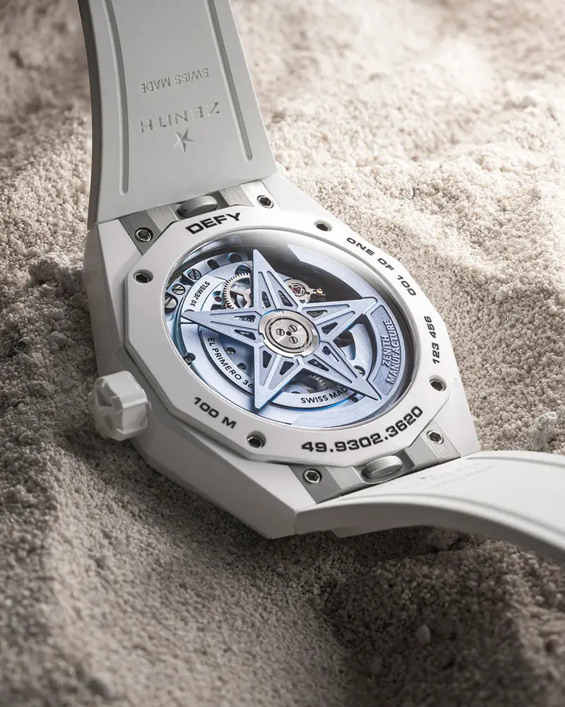 El ZENITH Defy Skeleton White Surfer Ceramic es una edición limitada de 100 relojes disponible en Time+Tide, en distribuidores autorizados de ZENITH y en las boutiques físicas y online de ZENITH de todo el mundo.